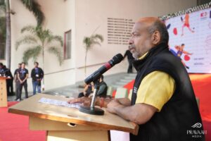 Addressing the gathering, Dr. Nagesh Bhandari, Presidential Secretariat, highlighted the importance of sports in nurturing discipline, teamwork, and a spirit of healthy competition among students. Sharing insights from his personal journey, he motivated students by emphasizing that perseverance and determination are the true foundations of success.